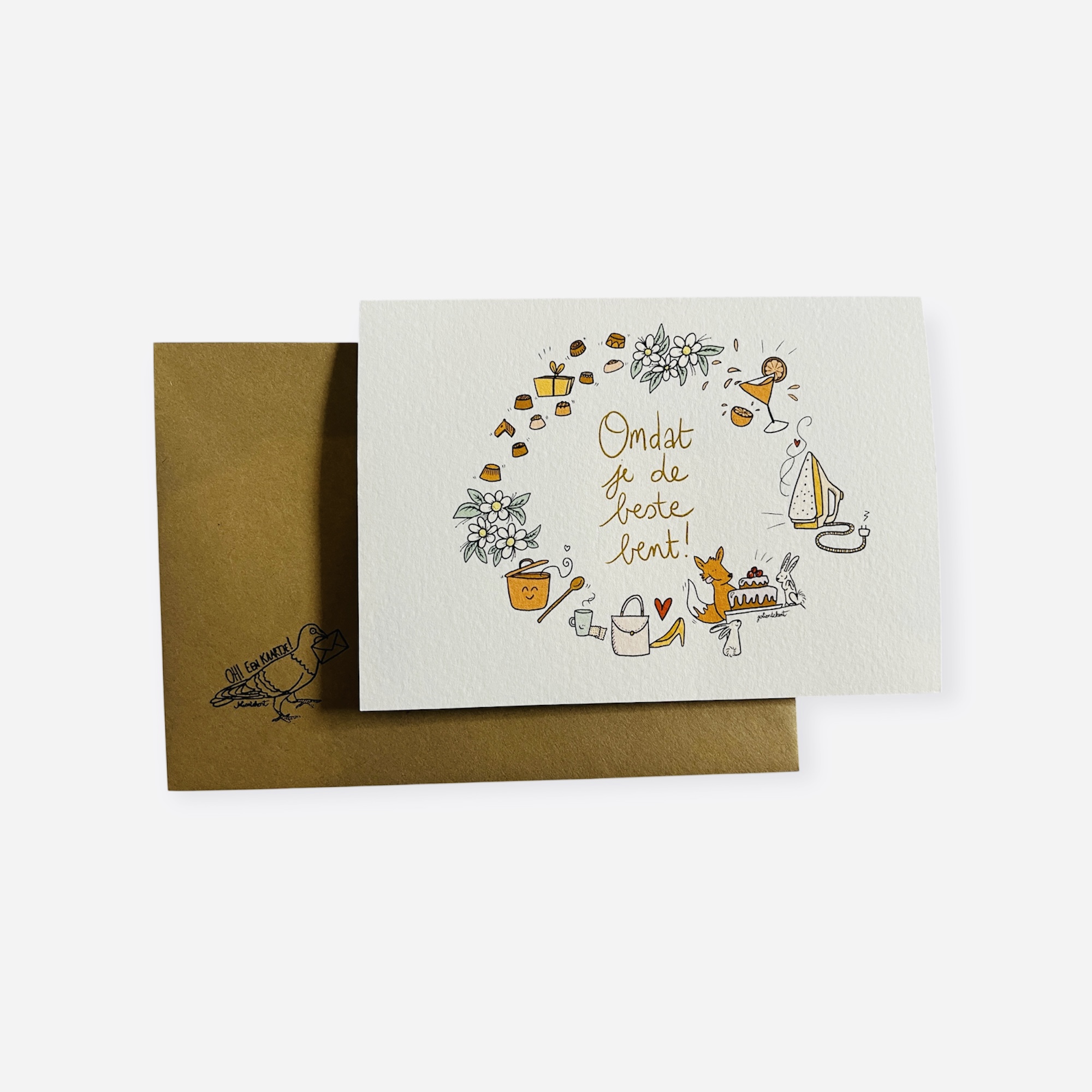 Dubbele wenskaart met envelop.